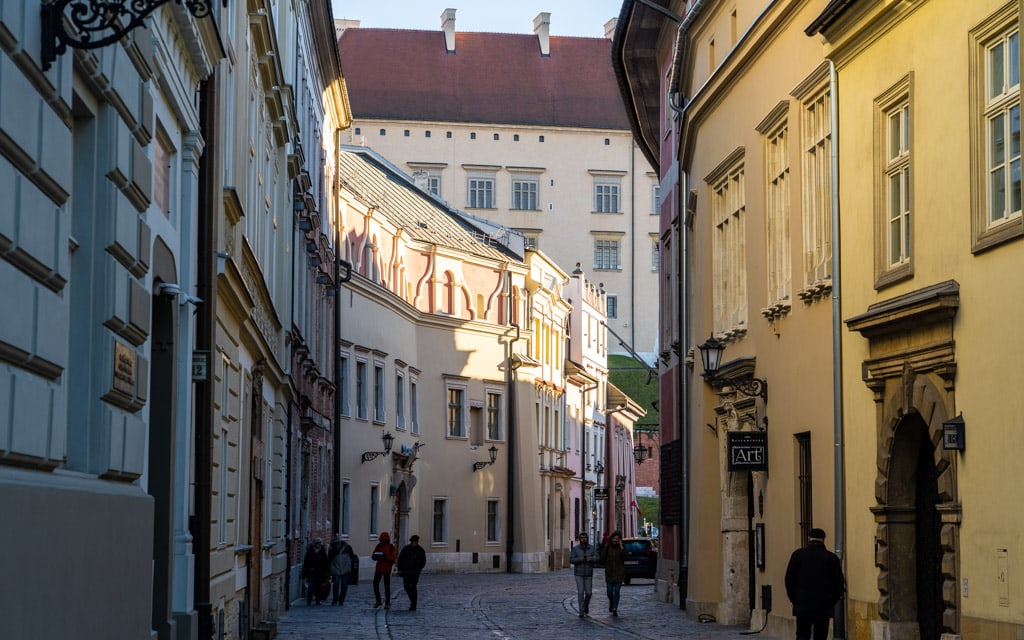 This part of the Royal Way you are currently on is Grodzka Street (Ulica Grodzka), one of the oldest streets in Kraków. Grodzka Street, which passes by many important churches and palaces, is about 650 meters (2,130 feet) long.