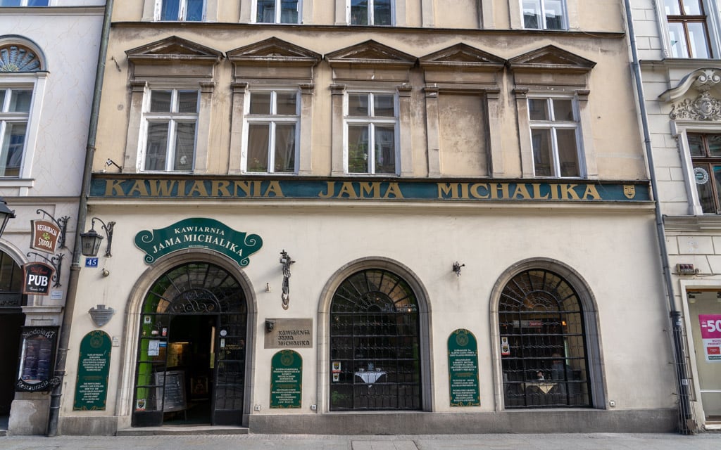 At #45 is Kawiarnia Jama Michalika (Jama Michalika Cafe). At the turn of the 20th century, this dark cafe was a local hangout of the Młoda Polska (Young Poland) movement, which popularized Art Nouveau in Poland.